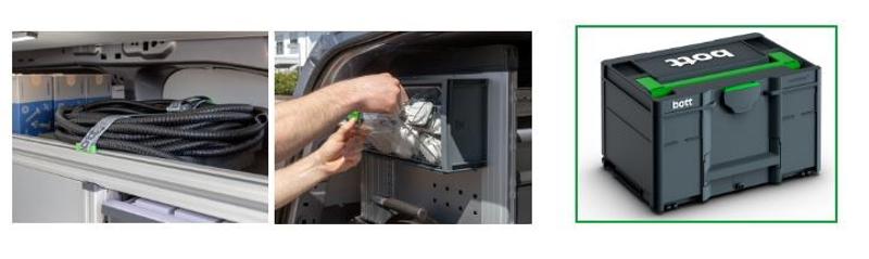 Dankzij de samenwerking tussen bott, Festool en TANOS sluit bott vario3 naadloos aan op het Systainer3‑systeem. Je koffers, modules en transportsystemen passen perfect bij elkaar, waardoor je nog efficiënter werkt en altijd overzicht houdt.